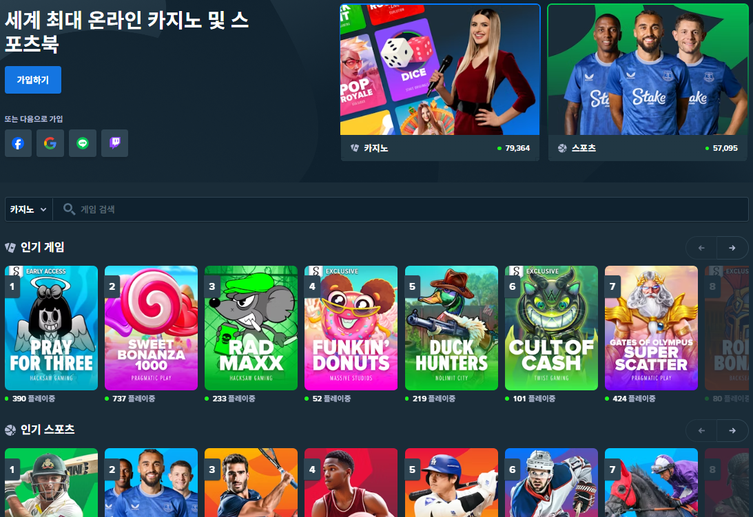 장점- 다양한 게임 및 베팅 옵션: 3,000개 이상의 카지노 게임(슬롯, 라이브 딜러, Stake Originals)과 35개 이상의 스포츠 베팅 시장(축구, 크리켓, e스포츠, 경마 등)을 제공합니다. 특히 K리그, KBO, e스포츠(LOL, 발로란트) 등 한국 사용자 선호도가 높은 옵션이 포함됩니다.
