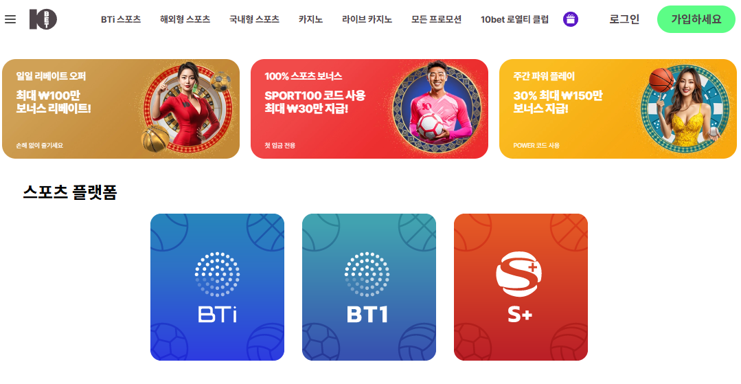 이용 가능한 게임 종류10벳은 스포츠 베팅, 카지노, 기타 게임을 아우르는 다양한 옵션을 제공합니다. - 스포츠 베팅: 축구(K리그, EPL), 야구(KBO, MLB), 농구(NBA, KBL), 테니스, e스포츠(LOL, 도타 2, CS2), 경마, 가상 스포츠, 스누커 등 60개 이상의 스포츠.
